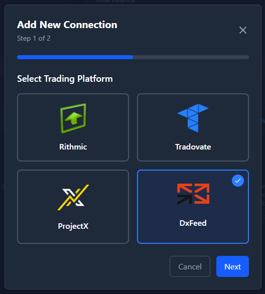If your prop firm allows only a single active login session, dxFeed accounts from that prop firm can only be used as follower accounts in FutuCopy.