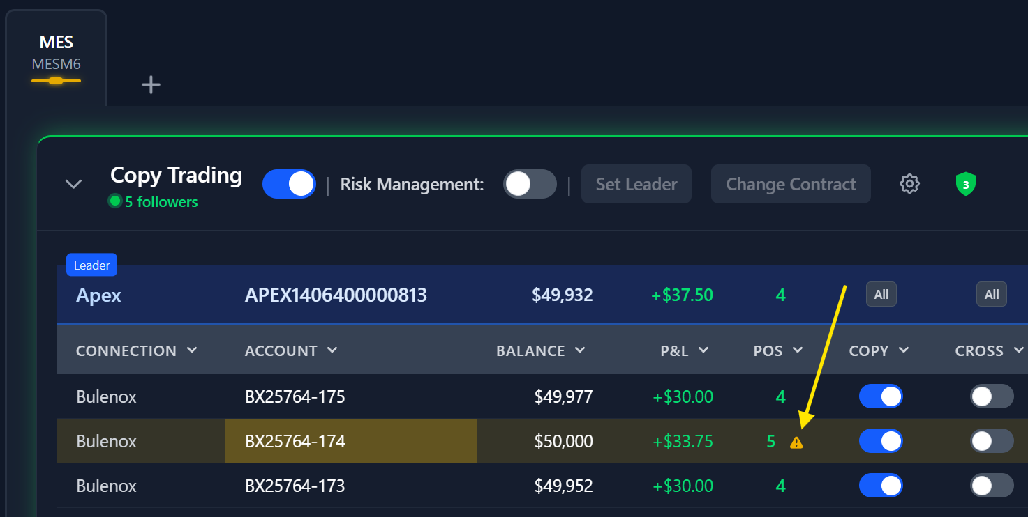 - When a discrepancy is found and the system needs to flatten a follower, copy trading is briefly paused (the copy rule is disabled), the follower is flattened, and then copy trading is automatically re-enabled.